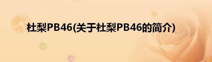 大家好,杜梨PB46,关于杜梨PB46的简介很多人还不知道,现在让我们一起来看看吧!