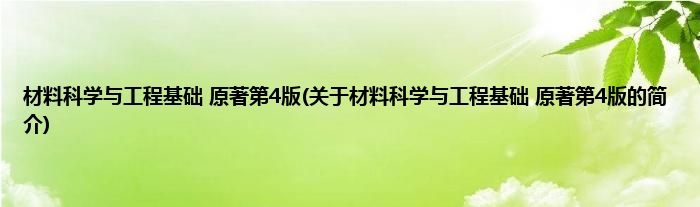本文关于材料科学与工程基础 原著第4版的简介就讲解完毕,希望对大家有所帮助。