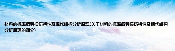 本文关于材料的概率疲劳损伤特性及现代结构分析原理的简介就讲解完毕,希望对大家有所帮助。