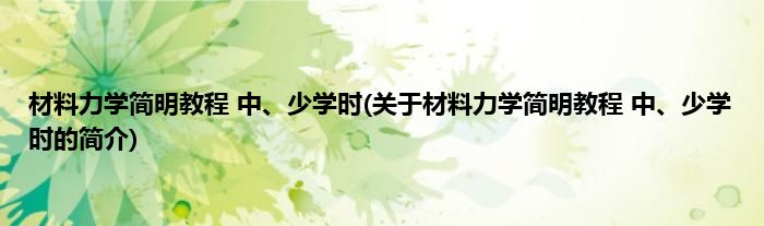 本文关于材料力学简明教程 中、少学时的简介就讲解完毕,希望对大家有所帮助。