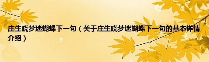 本文关于庄生晓梦迷蝴蝶下一句的基本详情介绍就讲解完毕,希望对大家有所帮助。