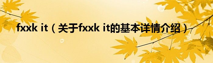 本文关于fxxk it的基本详情介绍就讲解完毕,希望对大家有所帮助。
