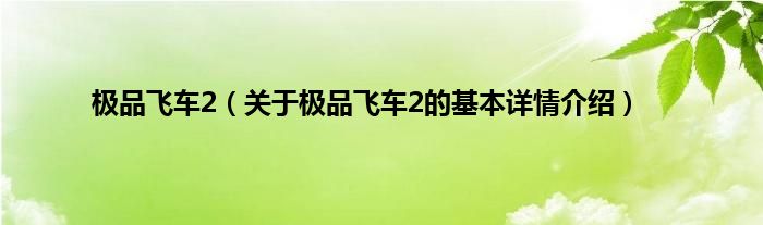 本文关于极品飞车2的基本详情介绍就讲解完毕,希望对大家有所帮助。