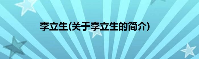 大家好,李立生,关于李立生的简介很多人还不知道,现在让我们一起来看看吧!