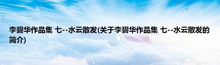 本文关于李碧华作品集 七--水云散发的简介就讲解完毕,希望对大家有所帮助。