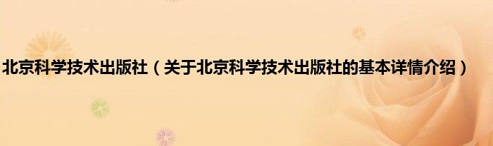 本文关于北京科学技术出版社的基本详情介绍就讲解完毕,希望对大家有所帮助。