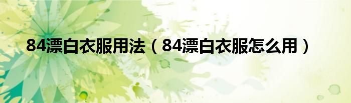 大家好,小科来为大家解答以上问题。84漂白衣服用法,84漂白衣服怎么用很多人还不知道,现在让我们一起来看看吧!