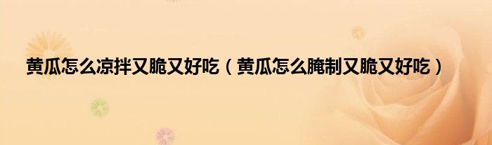 大家好,小科来为大家解答以上问题。黄瓜怎么凉拌又脆又好吃,黄瓜怎么腌制又脆又好吃很多人还不知道,现在让我们一起来看看吧!