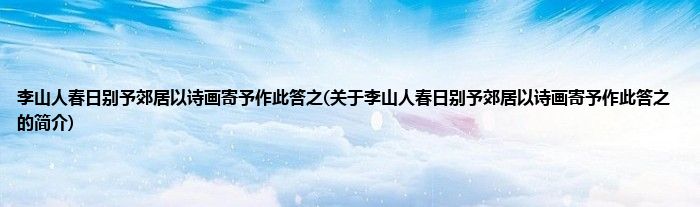 本文关于李山人春日别予郊居以诗画寄予作此答之的简介就讲解完毕,希望对大家有所帮助。