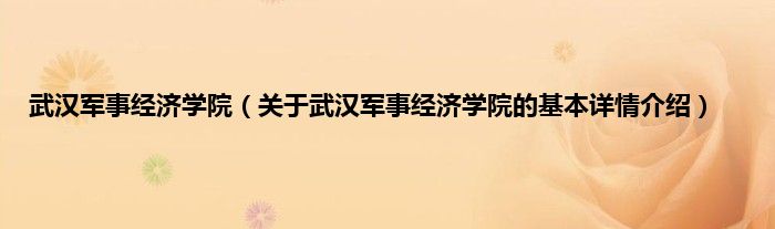 本文关于武汉军事经济学院的基本详情介绍就讲解完毕,希望对大家有所帮助。