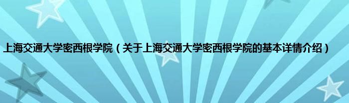 本文关于上海交通大学密西根学院的基本详情介绍就讲解完毕,希望对大家有所帮助。