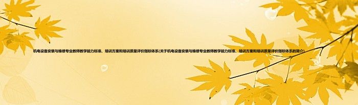 大家好,机电设备安装与维修专业教师教学能力标准、培训方案和培训质量评价指标体系,关于机电设备安装与维修专业教师教学能力标准、培训方案和培训质量评价指标体系的简介很多人还不知道,现在让我们一起来看看吧!