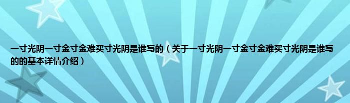 本文关于一寸光阴一寸金寸金难买寸光阴是谁写的的基本详情介绍就讲解完毕,希望对大家有所帮助。