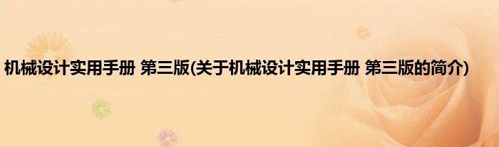 本文关于机械设计实用手册 第三版的简介就讲解完毕,希望对大家有所帮助。
