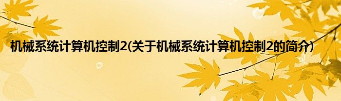 本文关于机械系统计算机控制2的简介就讲解完毕,希望对大家有所帮助。
