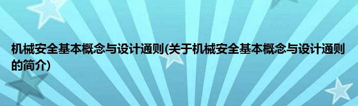 大家好,机械安全基本概念与设计通则,关于机械安全基本概念与设计通则的简介很多人还不知道,现在让我们一起来看看吧!