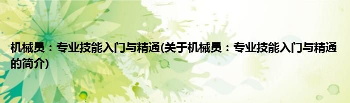 本文关于机械员:专业技能入门与精通的简介就讲解完毕,希望对大家有所帮助。
