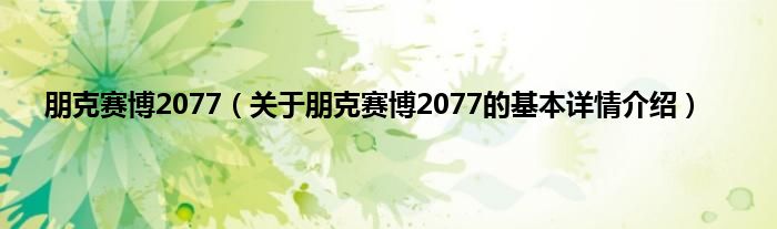 本文关于朋克赛博2077的基本详情介绍就讲解完毕,希望对大家有所帮助。
