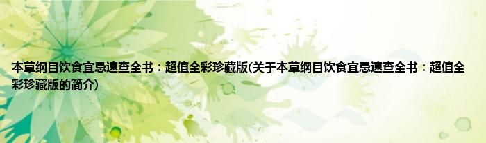 1、 《本草纲目饮食宜忌速查全书:超值全彩珍藏版》是2015年北京联合出版公司出版的图书。