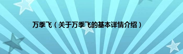 万季飞(关于万季飞的基本详情介绍)