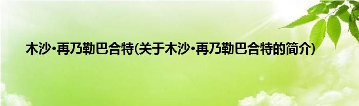 大家好,木沙·再乃勒巴合特,关于木沙·再乃勒巴合特的简介很多人还不知道,现在让我们一起来看看吧!