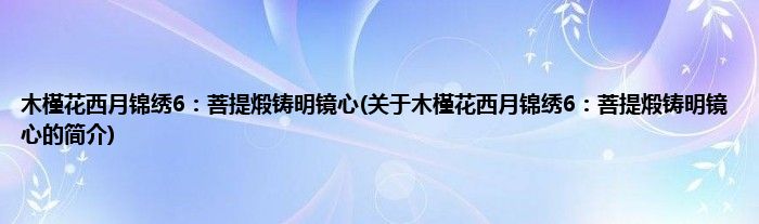 本文关于木槿花西月锦绣6:菩提煅铸明镜心的简介就讲解完毕,希望对大家有所帮助。