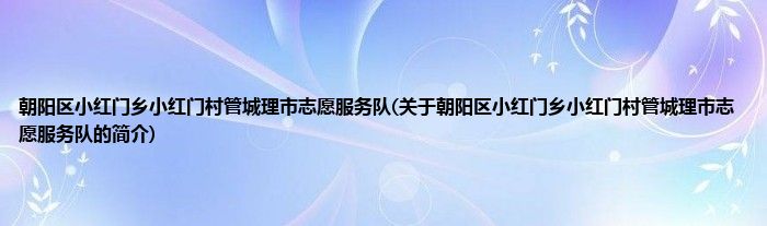 本文关于朝阳区小红门乡小红门村管城理市志愿服务队的简介就讲解完毕,希望对大家有所帮助。