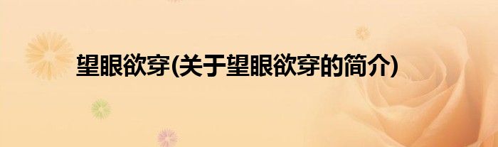 大家好,望眼欲穿,关于望眼欲穿的简介很多人还不知道,现在让我们一起来看看吧!