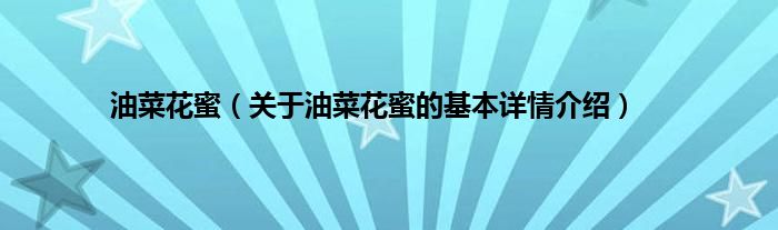 本文关于油菜花蜜的基本详情介绍就讲解完毕,希望对大家有所帮助。