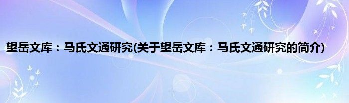 本文关于望岳文库:马氏文通研究的简介就讲解完毕,希望对大家有所帮助。