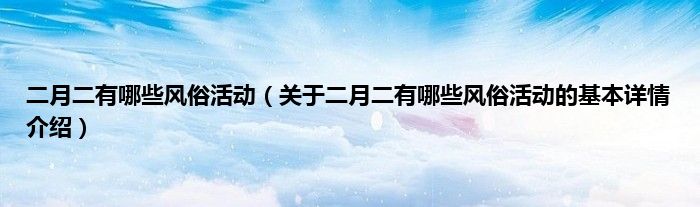本文关于二月二有哪些风俗活动的基本详情介绍就讲解完毕,希望对大家有所帮助。