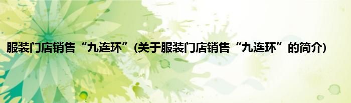 本文关于服装门店销售“九连环”的简介就讲解完毕,希望对大家有所帮助。