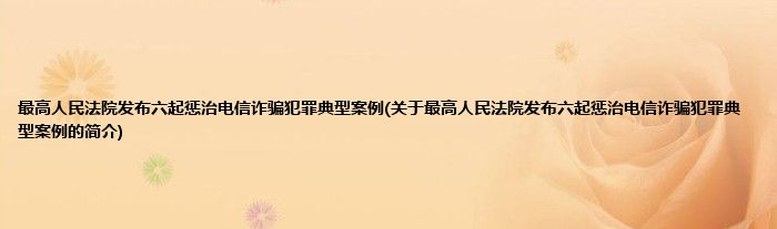 本文关于最高人民法院发布六起惩治电信诈骗犯罪典型案例的简介就讲解完毕,希望对大家有所帮助。