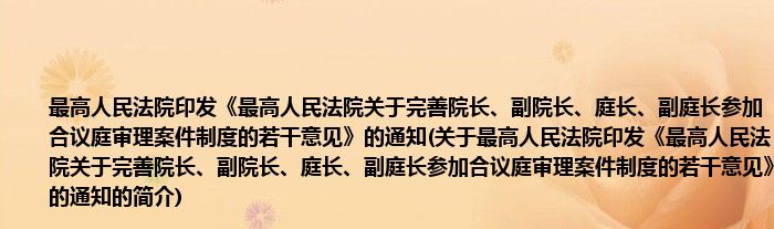 本文关于最高人民法院印发《最高人民法院关于完善院长、副院长、庭长、副庭长参加合议庭审理案件制度的若干意见》的通知的简介就讲解完毕,希望对大家有所帮助。