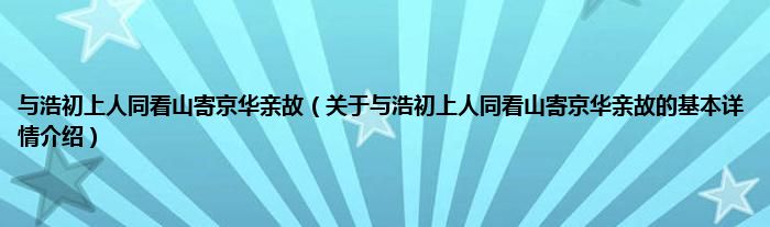 本文关于与浩初上人同看山寄京华亲故的基本详情介绍就讲解完毕,希望对大家有所帮助。