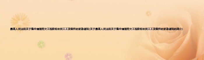 本文关于最高人民法院关于集中清理拖欠工程款和农民工工资案件的紧急通知的简介就讲解完毕,希望对大家有所帮助。