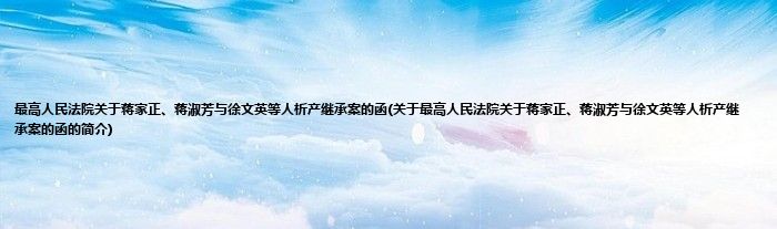 本文关于最高人民法院关于蒋家正、蒋淑芳与徐文英等人析产继承案的函的简介就讲解完毕,希望对大家有所帮助。