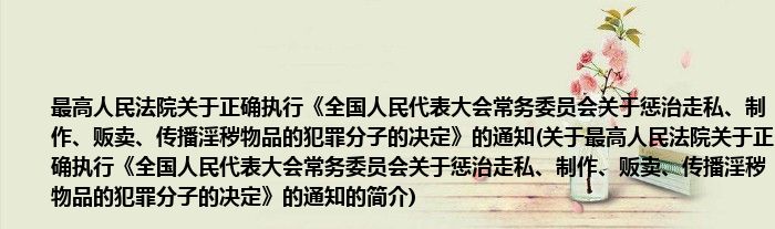 本文关于最高人民法院关于正确执行《全国人民代表大会常务委员会关于惩治走私、制作、贩卖、传播淫秽物品的犯罪分子的决定》的通知的简介就讲解完毕,希望对大家有所帮助。