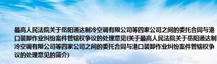 本文关于最高人民法院关于岳阳通达制冷空调有限公司等四家公司之间的委托合同与港口装卸作业纠纷案件管辖权争议的处理意见的简介就讲解完毕,希望对大家有所帮助。