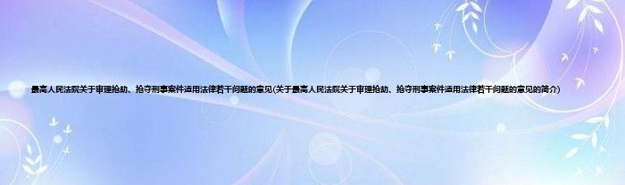 大家好,最高人民法院关于审理抢劫、抢夺刑事案件适用法律若干问题的意见,关于最高人民法院关于审理抢劫、抢夺刑事案件适用法律若干问题的意见的简介很多人还不知道,现在让我们一起来看看吧!