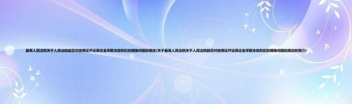本文关于最高人民法院关于人民法院能否对信用证开证保证金采取冻结和扣划措施问题的规定的简介就讲解完毕,希望对大家有所帮助。