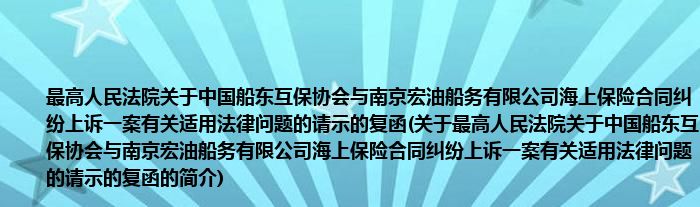 1、 《最高人民法院关于中国船东互保协会与南京宏油船务有限公司海上保险合同纠纷上诉一案有关适用法律问题的请示的复函》在2004.05.26由最高人民法院颁布。
