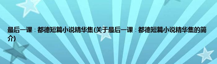 本文关于最后一课∶都德短篇小说精华集的简介就讲解完毕,希望对大家有所帮助。