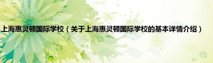 本文关于上海惠灵顿国际学校的基本详情介绍就讲解完毕,希望对大家有所帮助。