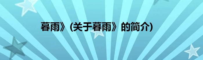 大家好,暮雨》,关于暮雨》的简介很多人还不知道,现在让我们一起来看看吧!