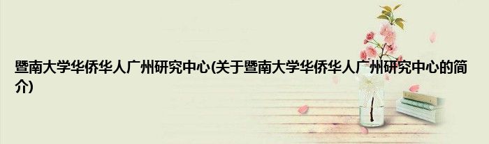 大家好,暨南大学华侨华人广州研究中心,关于暨南大学华侨华人广州研究中心的简介很多人还不知道,现在让我们一起来看看吧!