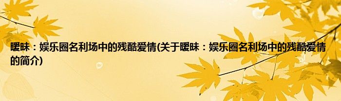 本文关于暧昧:娱乐圈名利场中的残酷爱情的简介就讲解完毕,希望对大家有所帮助。