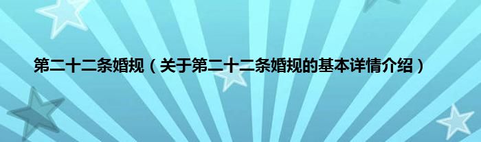 本文关于第二十二条婚规的基本详情介绍就讲解完毕,希望对大家有所帮助。