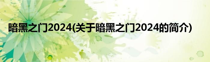 大家好,暗黑之门2024,关于暗黑之门2024的简介很多人还不知道,现在让我们一起来看看吧!