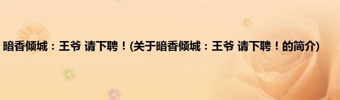 本文关于暗香倾城:王爷,请下聘!的简介就讲解完毕,希望对大家有所帮助。